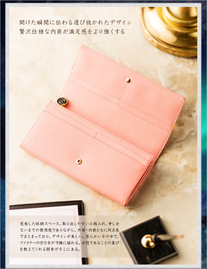 その特徴は、華やかで透明感があること。さりげなく型押しが加えられていて、飾り気はないもののファッション性にあふれた大人の女性向けのシリーズです。